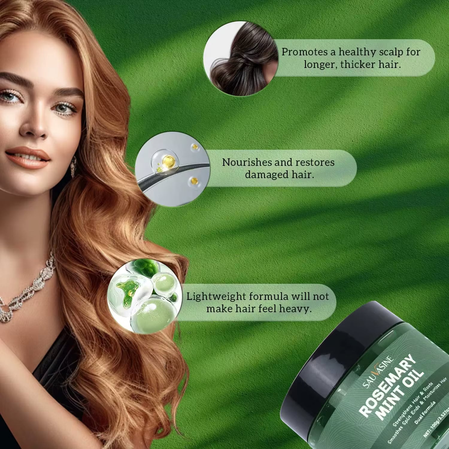 This botanical-rich Rosemary Mint Oil is designed to revitalize both scalp and hair through a concentrated blend of natural extracts. Its lightweight, non-greasy texture absorbs quickly, delivering deep moisture and strengthening benefits without weighing the hair down. Suitable for all hair types and ideal for daily scalp care or targeted treatment, it helps restore softness, reduce split ends, and promote healthier, more vibrant hair.